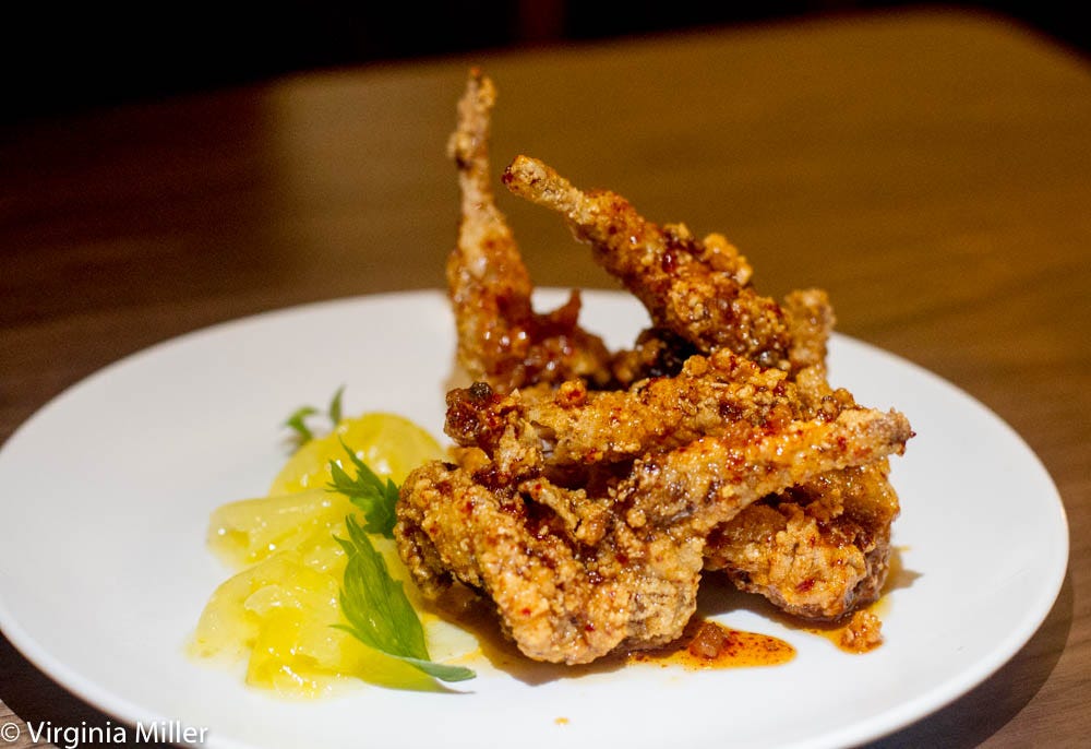 By this point, our expectations had risen as each dish was even better than it sounded on the menu. It hurt to skip over Chinese lionhead meatballs reinterpreted as a pork crepenette, a flattened French sausage of pork parts. Going bold, chef Hou serves it “on the bone” with pickled Thai eggplant. I’ll have to try this next time but couldn’t resist the sweet and sour quail. I’m glad I didn’t. It’s all dark meat juiciness in lively Chinese American sweet and sour sauce, tasting like childhood Chinese American food of my LA and NYC suburbs youth. It’s also perked up by gochugaru (Korean chili powder) and slivered pineapple, giving it contrasting sweetness and spice.