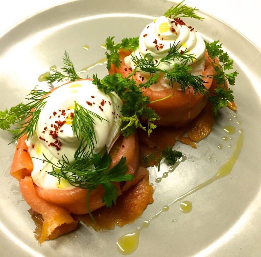Just because you feel like hell doesn’t mean you can’t still believe in love, so head to Cliff’s Edge in Silver Lake — one of the most romantic alfresco spots in town. Chef Vartan Abgaryan’s smoked salmon is full of omega 3 fatty acids that are reported to help in recovery from a hangover — the carbs from the potato pancake don’t hurt either. The poached eggs contain cysteine, a compound that helps the antioxidant glutathione form — and this is what breaks down toxins in your liver. There is a sprig of watercress because it’s green and good for you, then the dish is topped with sour cream because it tastes rich and soothing. Sip this with a Mimosa and you’ll be feeling as good as gold in no time.