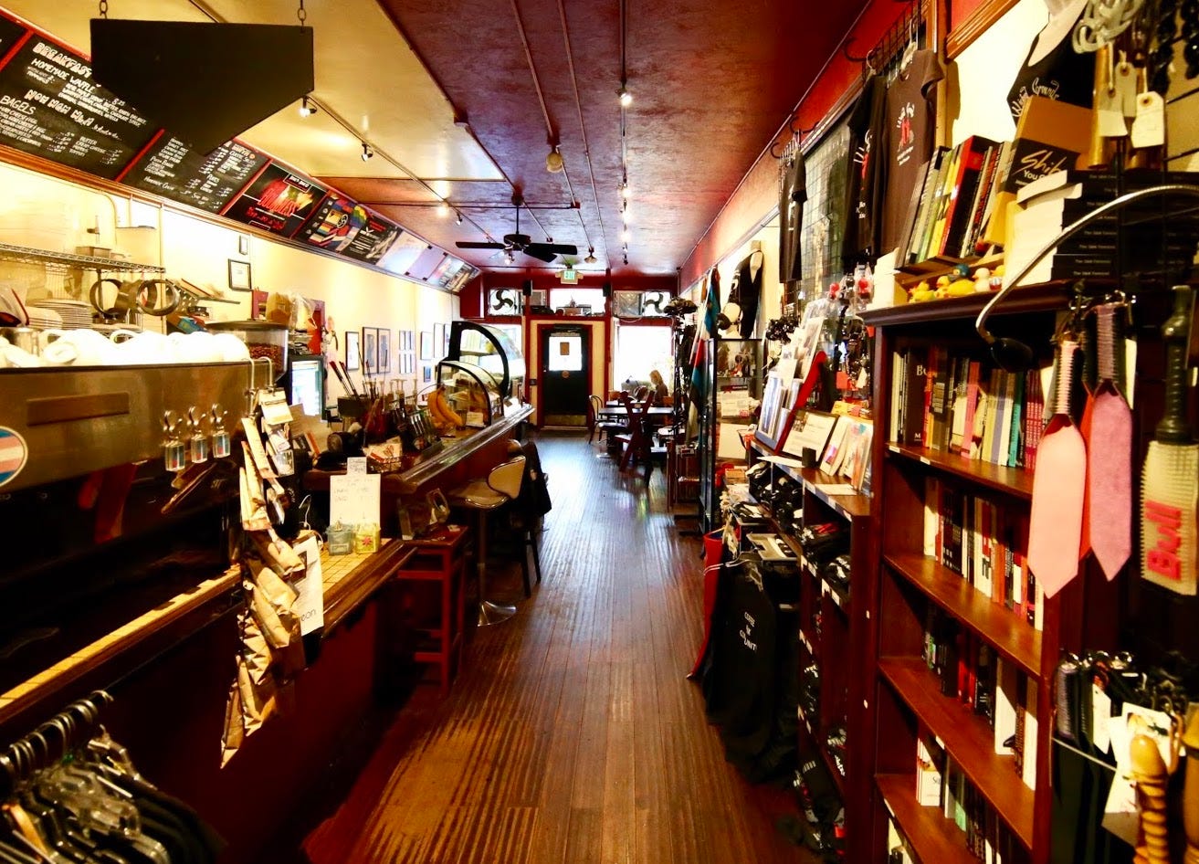 - Wicked Grounds: Exploring kink for the first time can be nerve-wracking, but this BDSM-oriented café in SoMa is just about as nonintimidating as it gets. As strange as it may sound, the vibe is very mom-and-pop, with the addition of some kinky artwork, books, and toys on display for good measure. Wicked Grounds hosts munches (casual social gatherings) and classes, including a Kink 101 series in addition to selling toys, books, and of course coffee. “The staff is really knowledgeable and can answer any specific kink questions you have or direct you to really great resources,” Liza tells me.