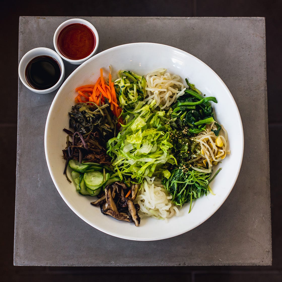 Many higher-end restaurants treat bibimbap as an art form and dedicate hours to the preparation of the vegetables and gochujang alone. The veggies are often seasonal and specially chosen to achieve a perfect balance of flavors, textures, and colors. Bay Area chefs tend to get creative with the ingredients and frequently provide vegetarians and vegans with meticulously formulated options at otherwise meat-centric Korean restaurants. House-made gochujang can vary dramatically with respect to heat factor, sweetness, tang, and pungency from restaurant to restaurant. Taste it before you douse your bowl.