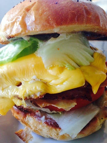 When this donut chain relocated back to SoCal recently there were hour long lines around the block for weeks. Too long for a donut fix, but this guilty pleasure really works as a late night grab and go when you’re tipsy or as a hangover breakfast pit stop. It’s your typical fast food morning sandwich with a peppery fried egg and bacon but the bun is actually a glazed donut.