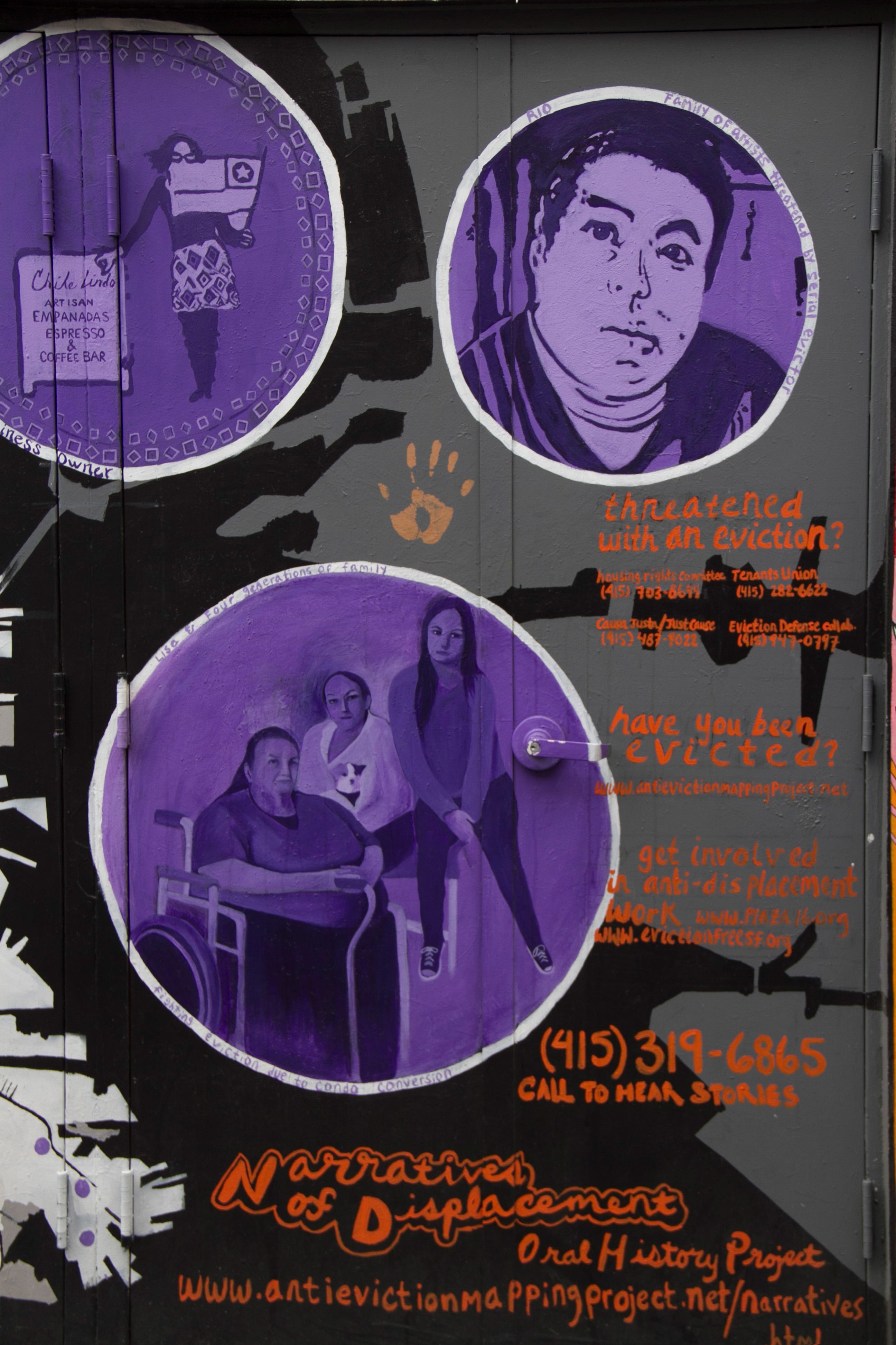 Murals are the Chronicle of street art, and Clarion Alley is its front page. Since its beginning in 1992, the Clarion Alley Mural Project (CAMP) has supported more than 500 artists — far too many to name and do justice to in a short article. But doing justice and giving voice to the unheard-of have been major themes of the project from the beginning.