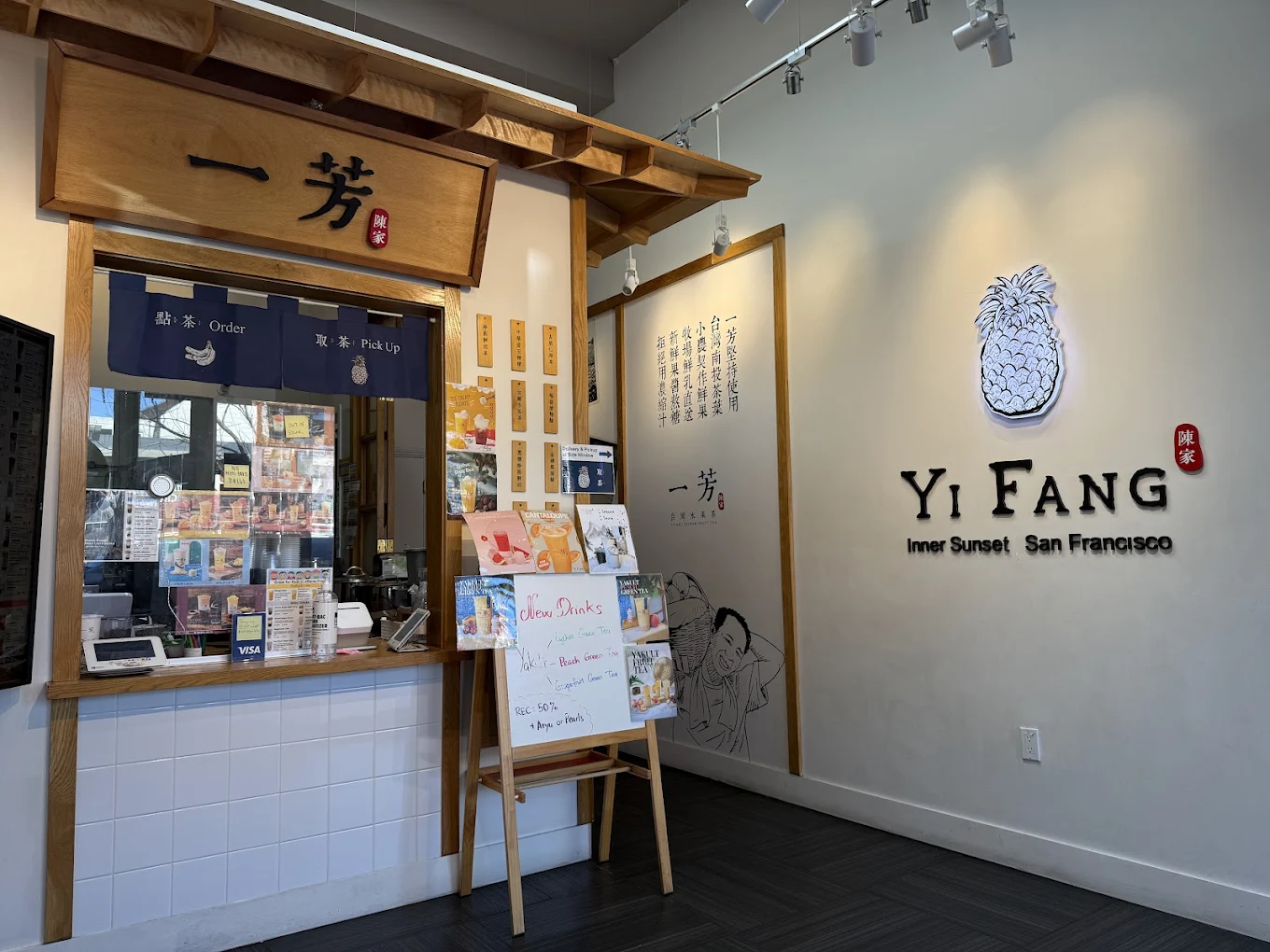Yi Fang is a global chain with a legitimately good origin story. The founder's grandmother developed their signature fruit tea recipe using homemade pineapple jam from the family's plantation in Taiwan, and the company still uses natural ingredients and house-made cane sugar. This particular location sits in the space that used to be Mi-Tea, which closed after a few quiet years. The pineapple history is displayed on the walls if you're waiting for your order, and the citrus drinks are where they shine. The Mango Pomelo Sago and the Aiyu Jelly Lemon Green Tea are both good, balanced, and not too sweet. It's a chain, yes. But it's a chain that takes the sourcing seriously.