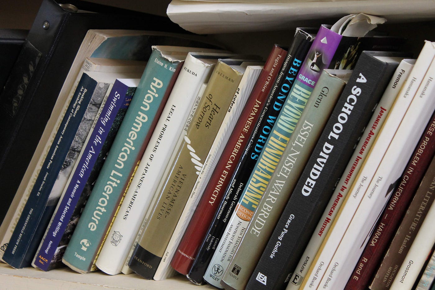The story begins on the bookshelves. Volumes of Chinese American author Maxine Hong Kingston’s The Woman Warrior sit next to iconic works by Korean American novelist Chang-Rae Lee, which are crammed alongside books by Indian author Arundhati Roy. The newer additions, marked by their glossy jackets, lie horizontally across the tops of shelved literature, like the uber-popular Little Fires Everywhere and Crazy Rich Asians. Across the store, a wide smattering of others include picture books in Khmer, Tongan historical publications and a cookbook devoted solely to Spam.