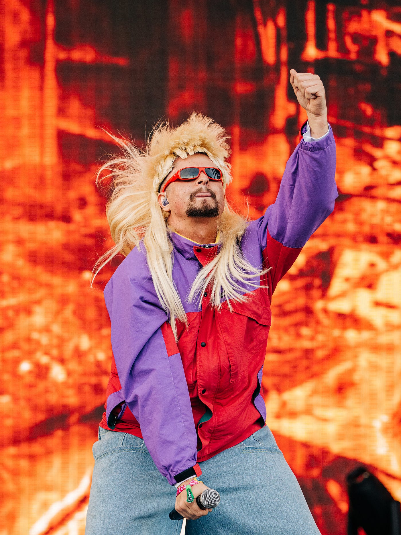 After Hiatus Kaiyote — an Aussie jazz fusion band that I’ve always felt could be using their chops… to much more interesting ends — I was subjected to the verbal torments of Oliver Tree, a pop-rap provocateur with a goatee and blond wig that made him look (deliberately, I don’t doubt) like a cut-rate Billy Ray Cyrus. “Uzi, Uzi,” chanted the mass of sweaty bros, and Tree only used their dismissal as ammunition for his anti-social antics. He threatened to make each song his last, a schtick that was funny at first and then got annoying — again, probably the point, which is what made his set so exciting.