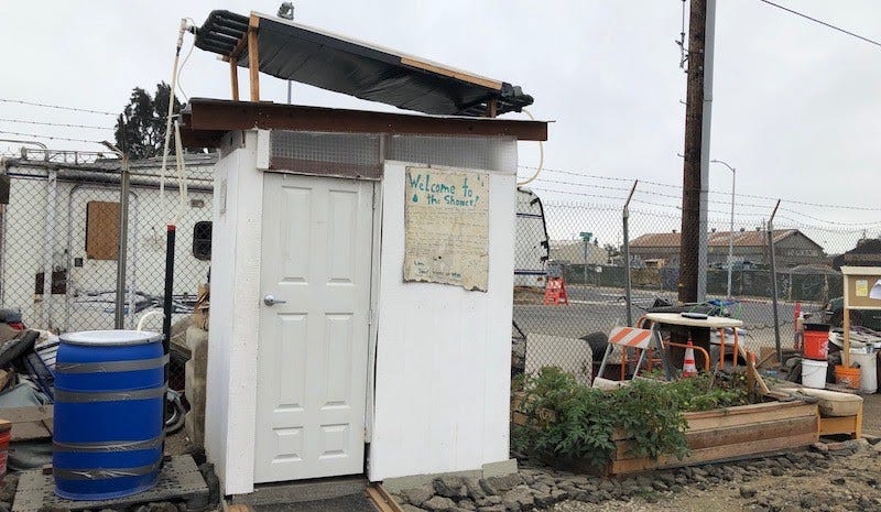 (I was really struck by how the group had stepped in where local government officials had not — at least not in a way that the people living there wanted them to. For example, they’d built the residents of this encampment a shower.)