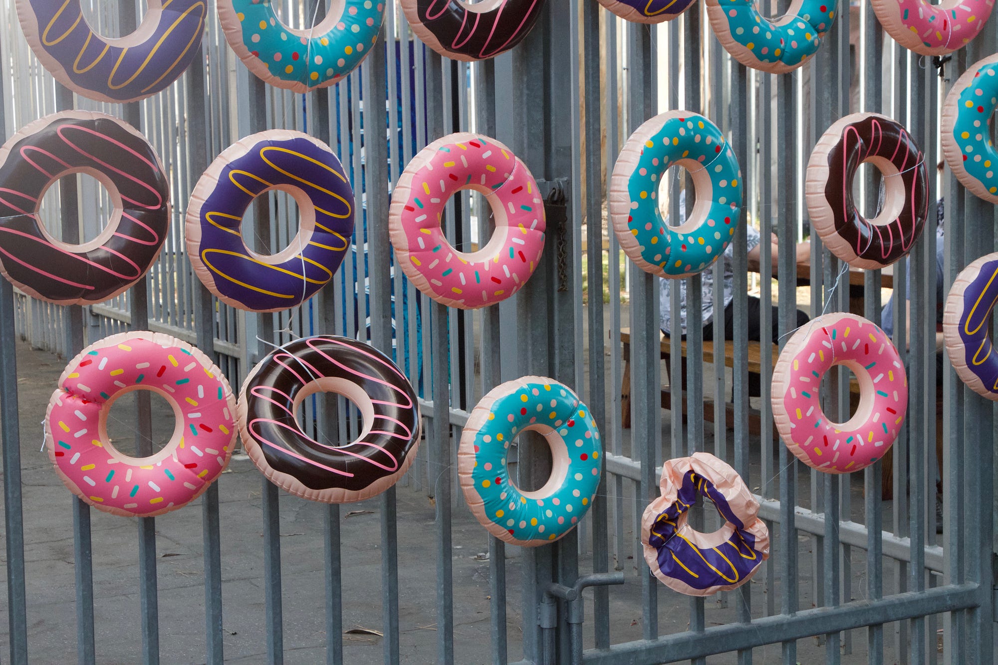 Desserts galore at the ice cream social corner. Açaí bowls, strawberry chia-seed drinks, s’mores, churros, shaved ice, rice pudding and a very sad-looking deflated donut.