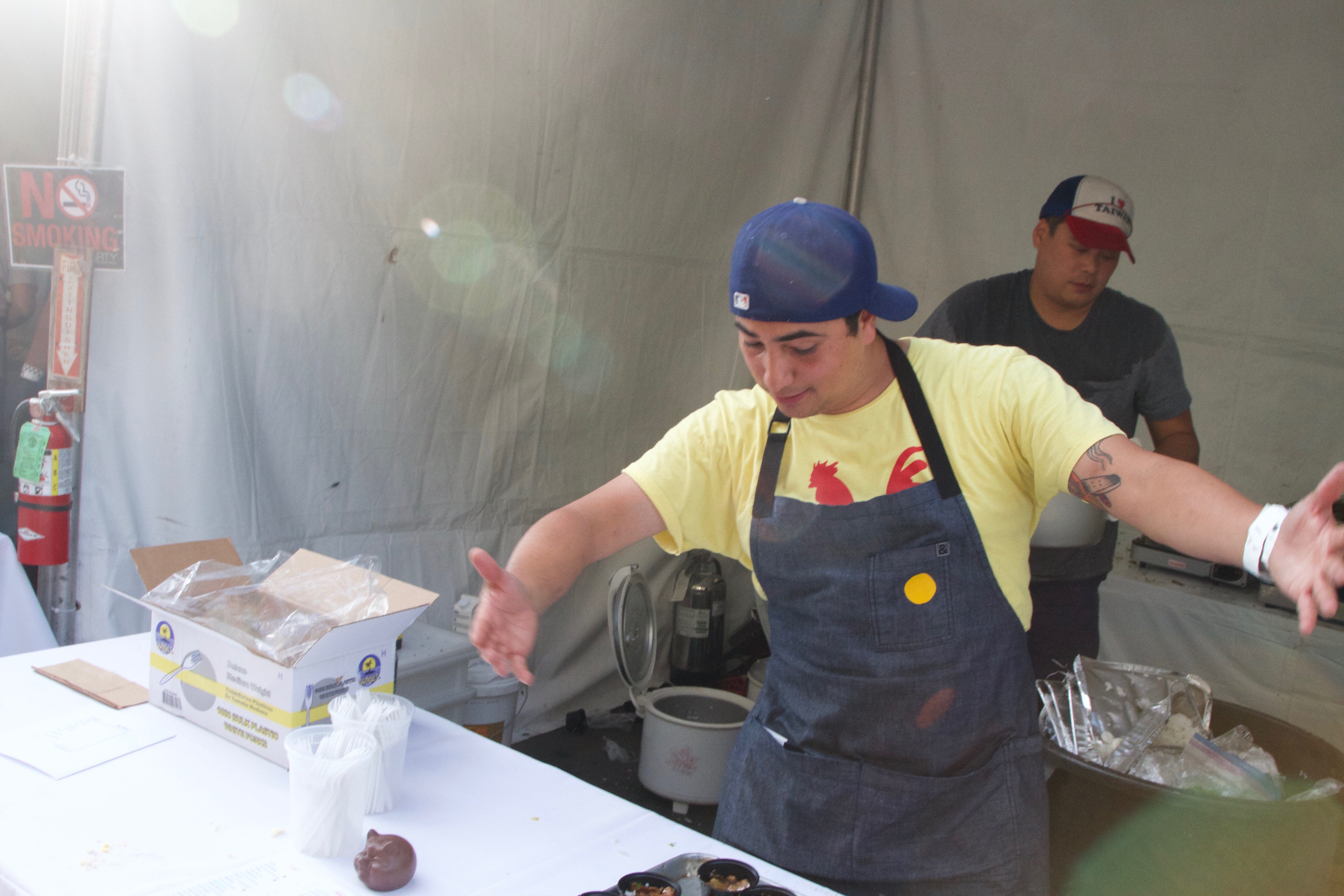 This enthusiastic banana is Nguyen Tran, creator of LA’s underground restaurant Starry Kitchen. He served buttermilk beer beignets in a spicy crab sauce while heckling the people waiting in line.