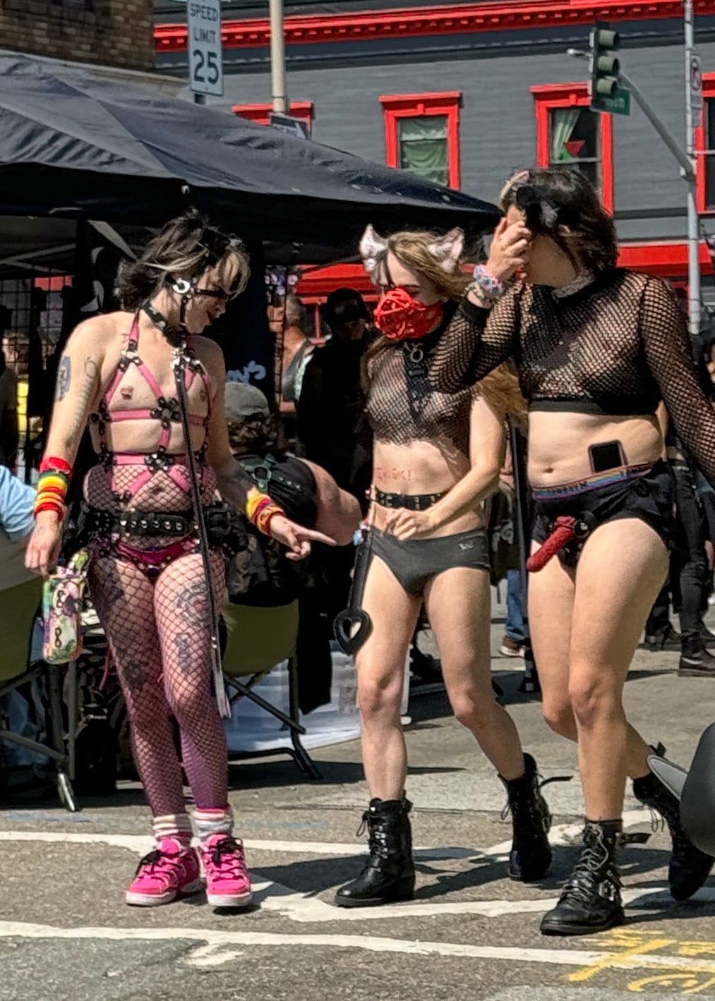 Have we mentioned there’s nudity here? This year’s Dore Alley featured a range of kinky activities, including live bondage demonstrations and the ever-popular Naked Twister. The event was a mix of erotic displays and community connection. For as many displays of love and friendship, we saw equal amounts of saucier physical connection.