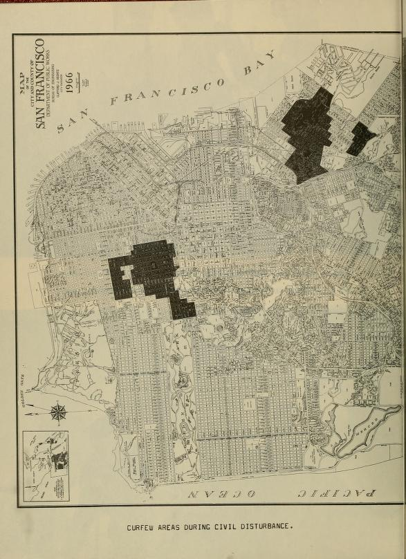 The last time San Francisco issued a curfew order in 1966, the city had erupted in protest after a police officer fatally shot a Black teenager. Sixteen-year-old Matthew Johnson had been driving a stolen car with two friends when a police officer chased after him and fired his weapon, killing Johnson. Mayor John F. Shelley responded to the uprising by calling in the National Guard and ordering a curfew in predominantly Black neighborhoods throughout the city — Bayview-Hunters Point and a portion of the Haight and the Fillmore.