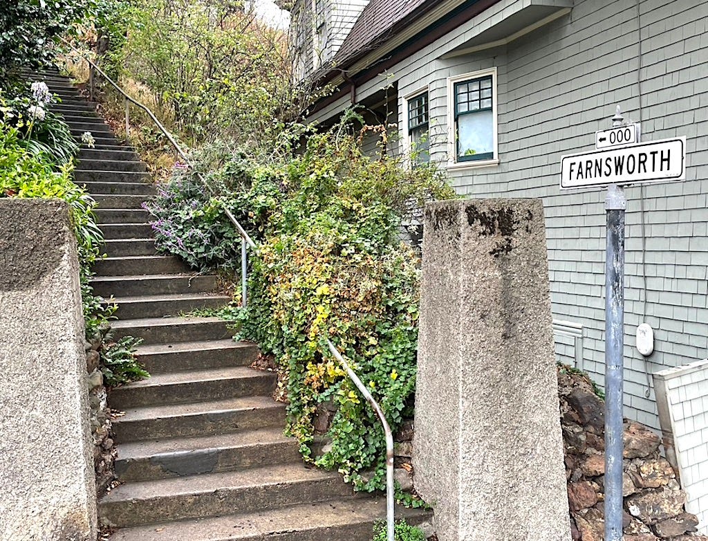 Nestled in the Parnassus Heights neighborhood, the Farnsworth Steps create a discreet passageway connecting Willard Street, just south of Parnassus Avenue, to the northern end of Edgewood Avenue. This 55-foot ascent offers more than mere convenience; it provides a tranquil retreat from the city’s perpetual motion. As you ascend, you’re enveloped by verdant foliage, with each step accompanied by the rustle of leaves and the distant hum of urban life.