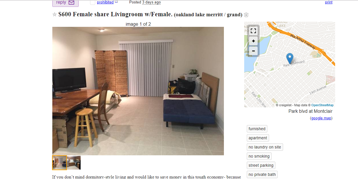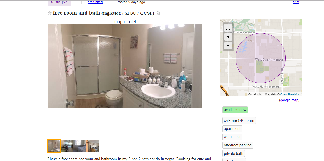This questionable “landlord” is tagging the apartment as being close to San Francisco State University, when, in reality, the place is in Las Vegas. Also, they’re “looking for cute and under 25 yr girls.” YIKES! Run away.