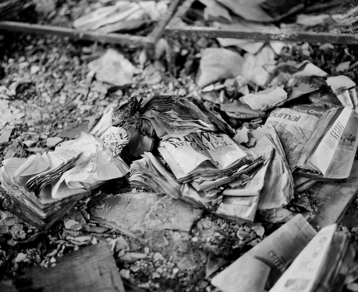 Inside the abandoned house, these newspapers were all that was left. The waste tells its own story, revealing traces of the past.