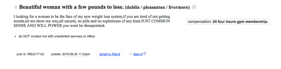 What: Someone is seeking a “beautiful woman with a few pounds to lose.” They have a weight-loss system and want to share it with you.