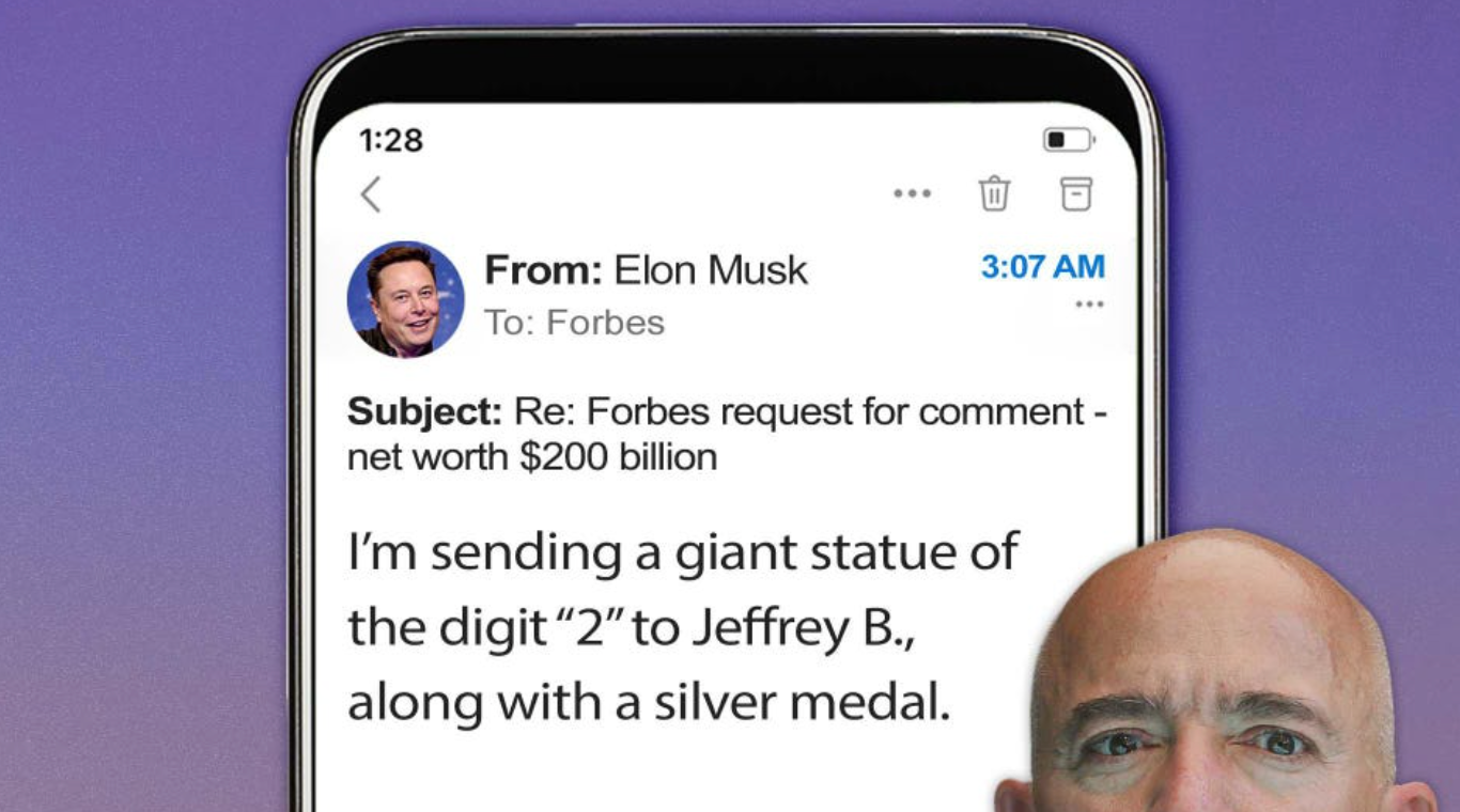 Hark all ye faithful: the billionaires are throwing their toys out their prams again. In early October, Elon Musk’s fortune rocketed to over $200 billion — and he chose to celebrate that stupefying fact by thumbing his nose at Jeff Bezos, who’d been demoted to the second richest person in the world. “I’m sending a giant statue of the digit ‘2’ to Jeffrey B., along with a silver medal,” Musk told Forbes. Now that’s exactly the kind of mature attitude we want from our billionaires, right?