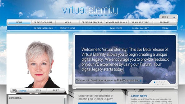 Everyone hates the idea of dying and being forgotten, and startup Intellitar capitalized on this fear with their subscription immortality startup, launched in 2010. For $25 a month, users could upload voice samples, photos, and thoughts, and an AI algorithm would create smart avatars of them that could communicate with their descendants. To create their avatar, users took the Myers-Briggs type personality test and were assigned to an avatar that could be personalized. For an extra $100, the avatar was programmed to re-create your voice.
