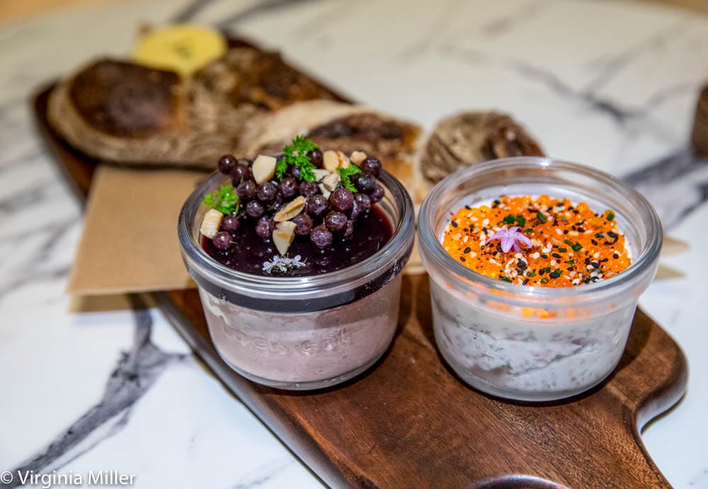 A key section of Viriot’s menu is rich, beautiful patés and mousses, best shared among a few. A Firebrand Bakery epi baguette with salted French butter starts things off as the receptacle for heritage pork paté with jimmy nardello peppers and Fallot dijon mustard, Liberty Duck liver mousse with red flame grape gelée, toasted marcona almonds and a winning garnish of crisp red flame grapes, or, my favorite: smoked salmon rillettes dotted with horseradish, everything bagel spices and trout roe. These spreads with a bottle of wine feel like a decadent picnic (in fact, leftover spreads made a fine picnic the next day).