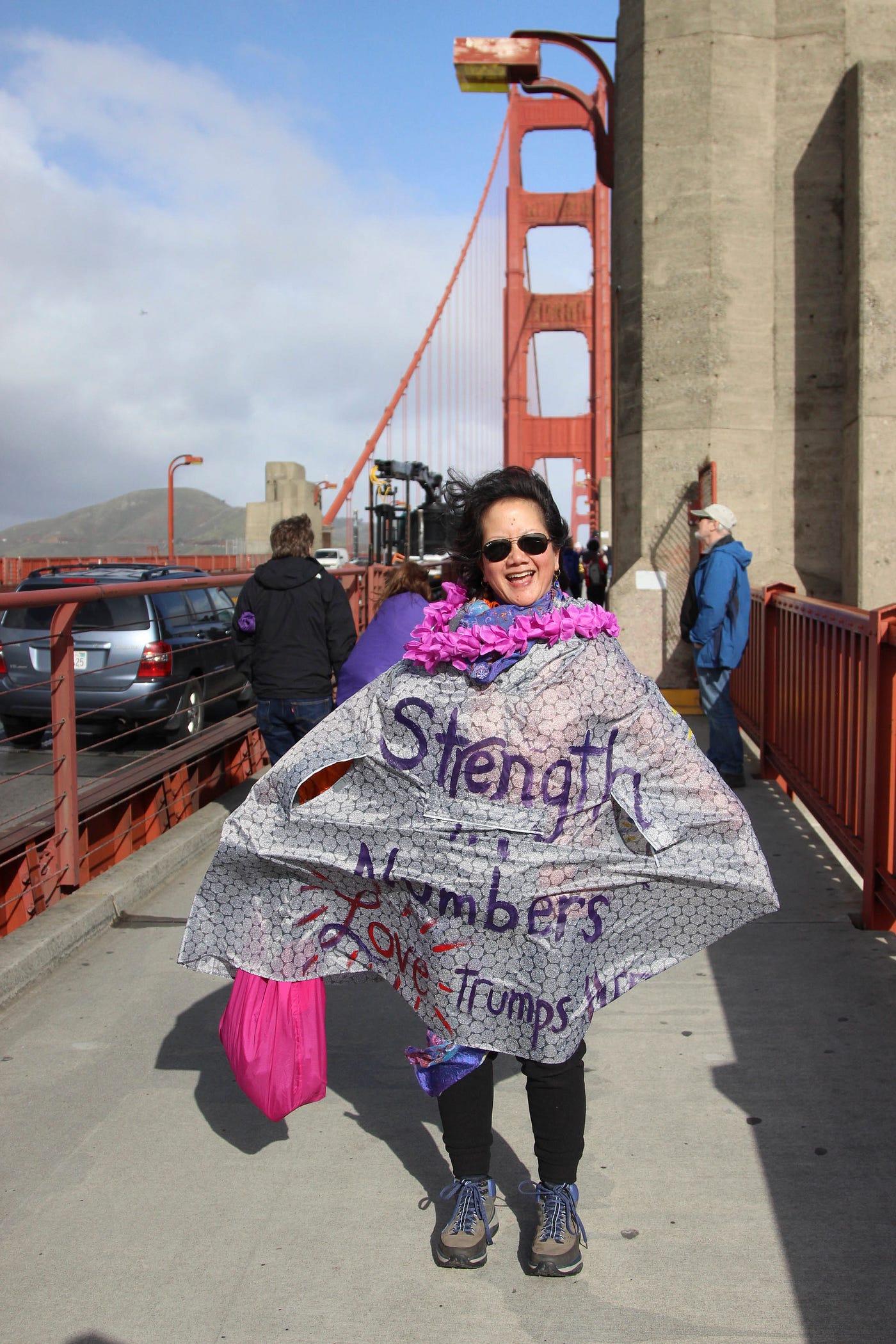 The demonstration was organized by Bridge Together Golden Gate and was billed as “a collaborative, grassroots, community-based demonstration and performance art piece“ that would “prove that #LoveTrumpsHate and [that] we are #StrongerTogether.”