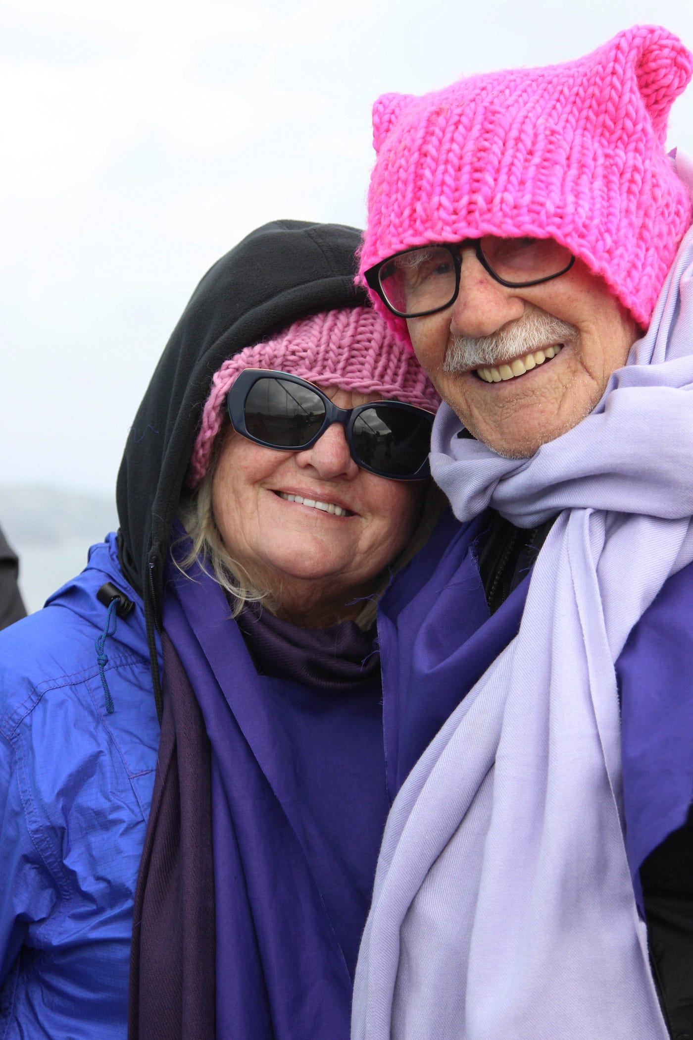 Christine Hough (right) of Martinez said she came “to stand up for decency, kindness and civility…human rights for all in this country. I intend to resist Trump and his hatred every step of the way for as long as it takes.”