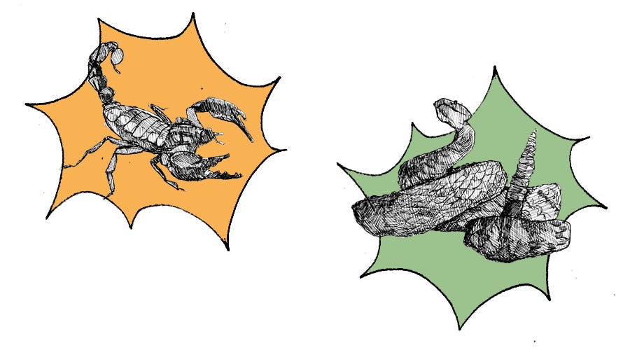 Filed under “Thank God we never ran into that” are mountain lions. I had always known they were around, but until the day we stumbled upon a half eaten deer carcass surrounded by giant paw prints, it never really occurred to me just how low on the food chain I really was. Rattlesnakes, scorpions and tarantulas all eventually wound up in my curious hands. That damn mountai-lion den scared the hell out of me, though.