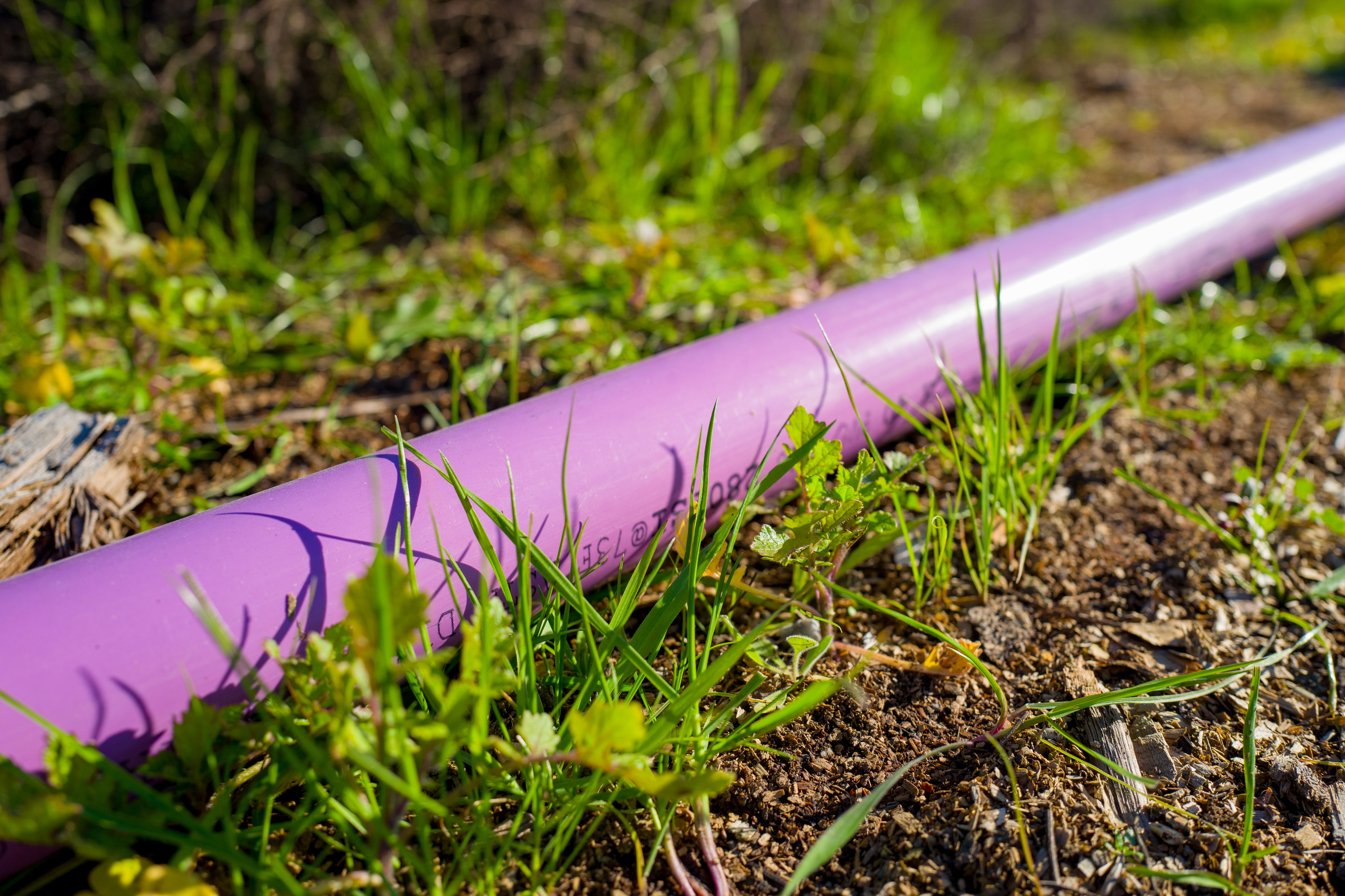 The water travels through a special pipeline to reach the farm. The distinctive purple pipes which carry it ensure that the water isn’t confused for conventional drinking water accidentally. The farm’s water is considered agricultural-grade, which means it’s safe to use on plants but not to drink directly.