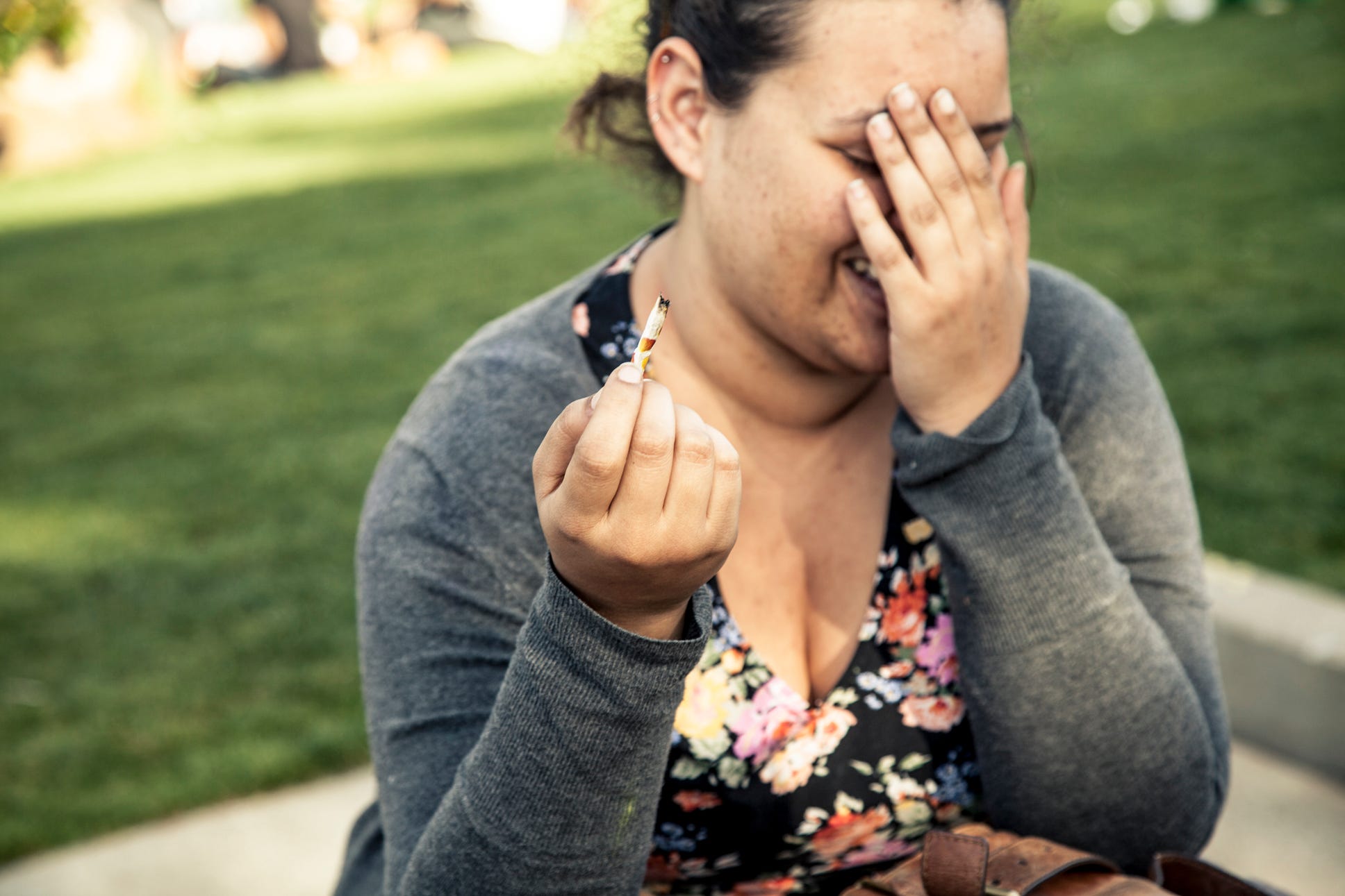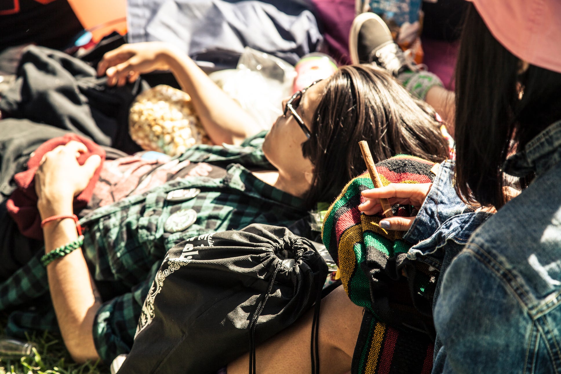 Right before I took her photo, this woman put out a spent roach in her friend’s beer bottle. “You know that wasn’t empty, right?” her friend asked. She started laughing right as I took the shot. “It’s OK,” her friend said, and then drank the roach-infused beer anyway.