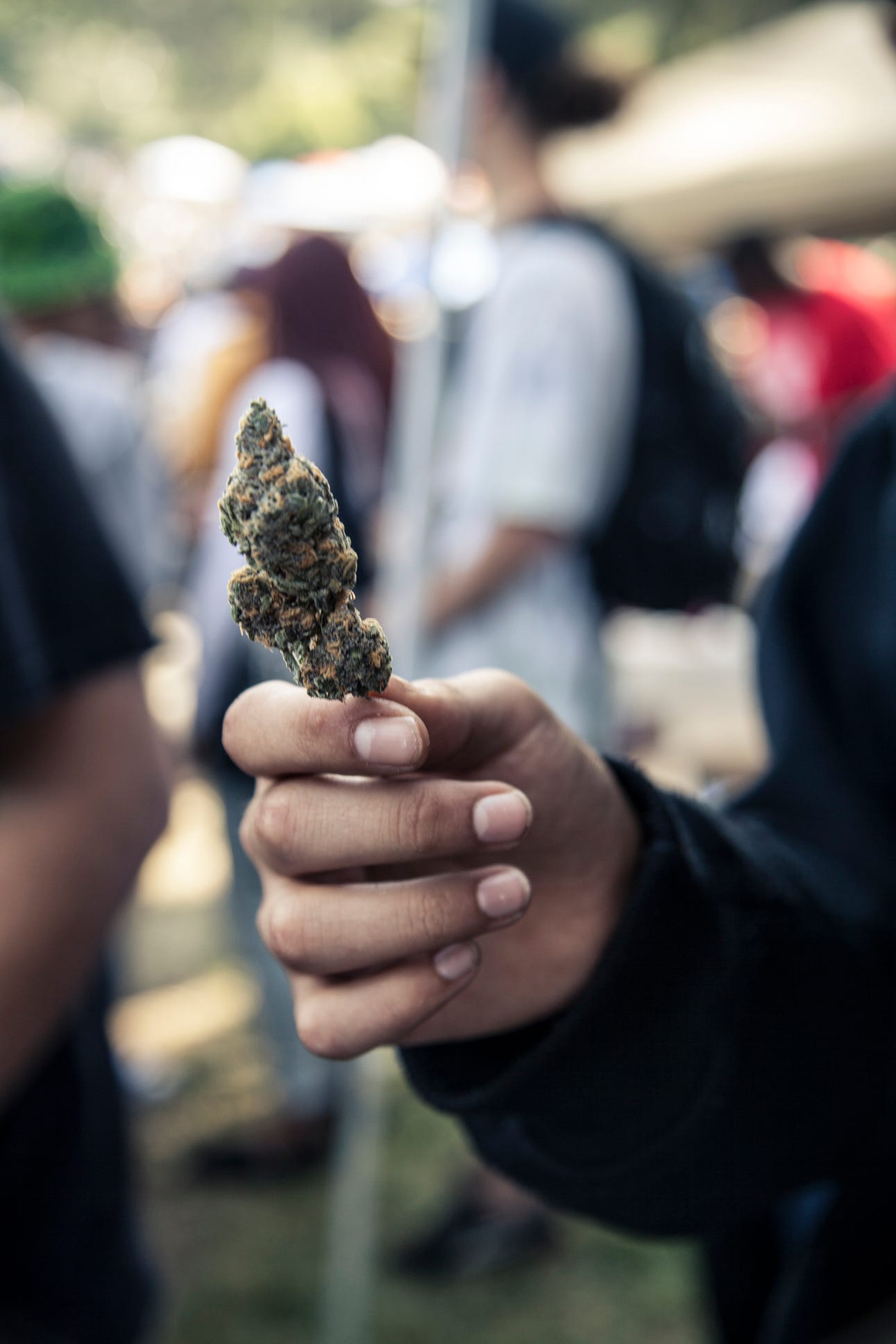 I hit up Hippie Hill first, and it wasn’t quite what I expected. It felt like an open-air weed market: sellers were walking around with poorly Sharpied cardboard signs, pushing weed treats, brownies, blunts, dabs, joints and tinctures.