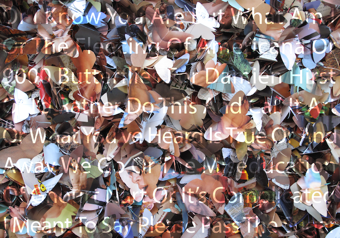 Local artist, Truong Tran has a solo exhibit at the Telegraph Hill Gallery that is comprised of 19 works and includes 9,000 butterflies cut from pornography. The exhibit, titled “ … Or I Meant To Say Please Pass The Sugar,” runs until March 28. I asked Tran some questions about his artwork. (Don’t scroll past them! They’re great.)