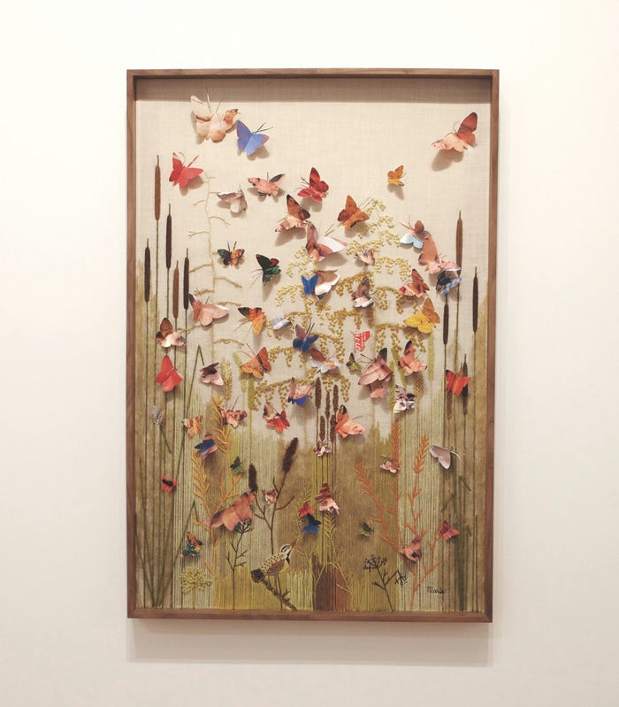 Over the course of several years, I continued to use this material but it wasn’t until the reported death of 9,000 butterflies for Damien Hirst’s 2012 retrospective at the Tate Museum that I found a clear goal. I’d counter what I considered obscene — the killing of these butterflies — with my own artistic gesture that to many is also deemed obscene. In doing so, I was bringing light to and drawing comparisons to the different systems of value we create in society.