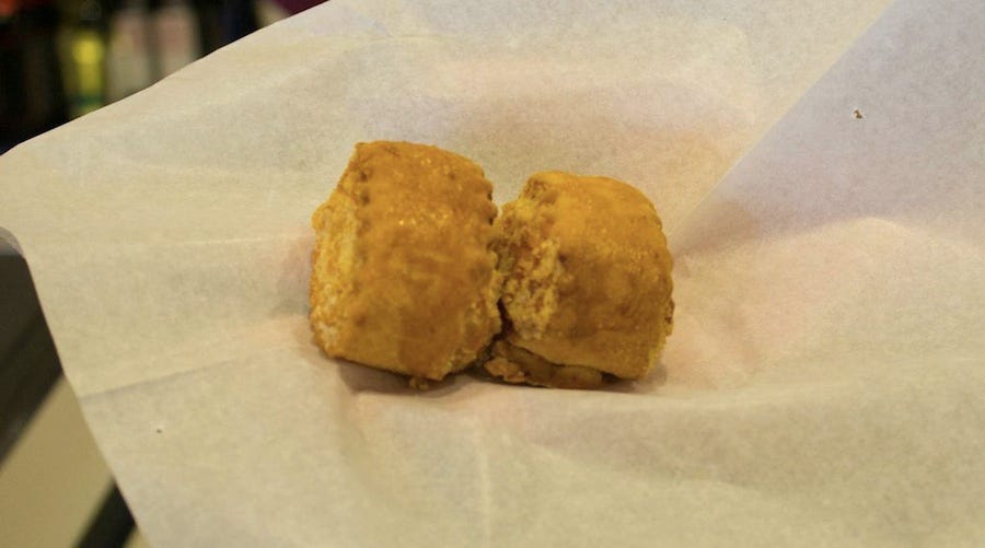 “Nobody else in the city sells puri, not like this,” Angela says. She mentions that her award-winning version is baked three times a day, every day. We pass by racks upon racks of the bread and watch as a fresh batch is rolled out onto the floor in a free-moving cart draped with plastic coverings designed to keep the bread warm and fresh.