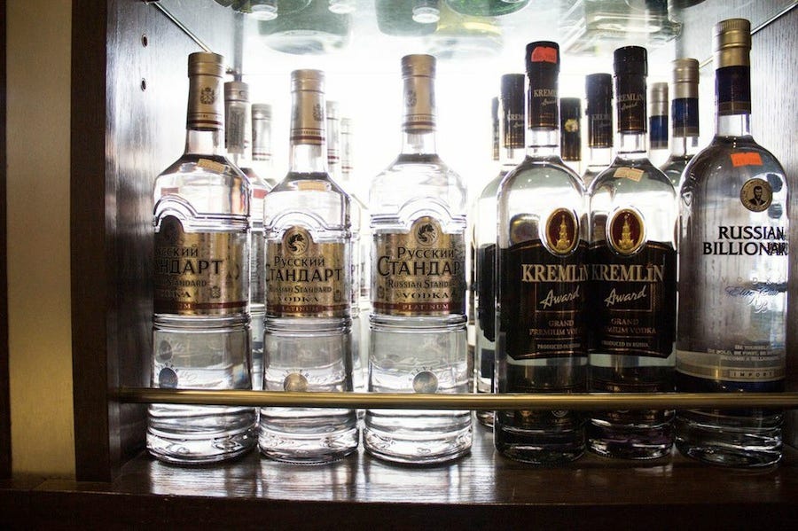 Angela gestures to the store’s wall of vodkas, which are impressively propped up against a window facing the street. Here you have your standard Smirnoffs, some Stolichnaya, and many different brands in between. There are a few bottles with names in a script I couldn’t read. When I asked which was her favorite, I expected Angela to talk up the bottles with the foreign script, but she pointed to the Russian Standard Vodka. “It’s just the smoothest,” she says.