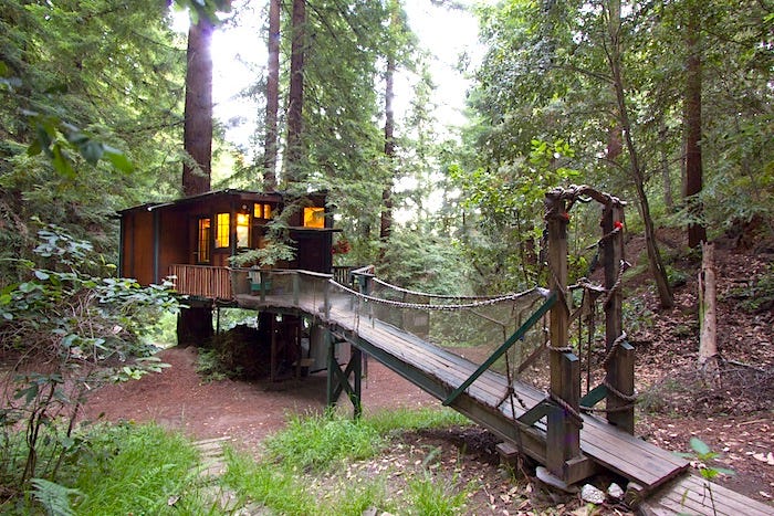Live out your Swiss-Family-Robinson-meets-Ewok-Adventure-movie dreams at this magical treehouse deep in the redwoods in the Santa Cruz Mountains. A short walk from where you park leads to the wooden bridge and up to the house, so pack lightly. It will all be worth it once you’re inside — you’ll truly feel like you’re the last person on earth. And you don’t ever have to leave because the kitchen is stocked full of everything for all your meals, and there’s a deck with a grill that overlooks the forest, and the most kick-ass hot tub. Grey, the outdoor resident tree cat, provides company and protection. This is a place you go to rest, eat, read, explore nature, soak, and drink whiskey whilst drawing up the blueprints for your future retirement treehouse.