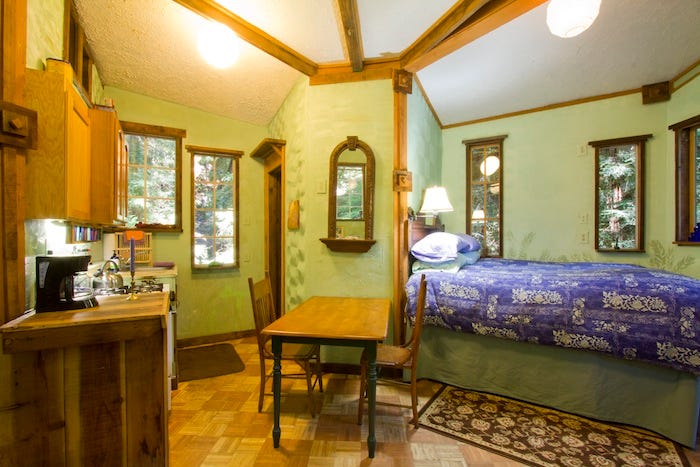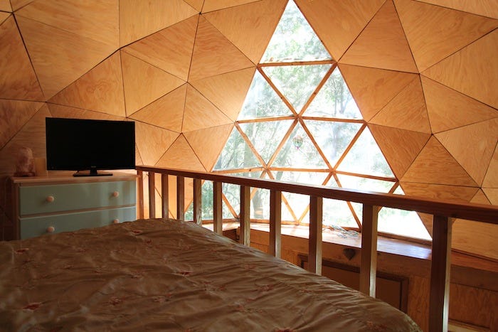 Located in the hills in Aptos right outside of Santa Cruz, this tiny little geodesic dome home is the perfect getaway for anyone looking to live out their hobbit-y utopian-society dreams. The owners have carved out a gorgeous community on their property which boasts chickens, a goat farm, tiny gnomish houses with crystal pyramid tops, and a shaded serene wooded glen. The dome itself is equipped with a loft bed that looks out onto the forest surrounding, a kitchen with all the basics, board games, tarot cards — and the owners will provide a jar of fresh goat milk if you ask. Mention that you like Bjork and they might let you into their house to watch a music video their son made for her on a homemade 3-D machine!