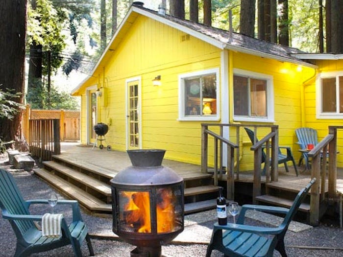 As you drive through the woods in the Russian River area, you can spot the cabin’s brilliant yellow hue. This wooden lemon drop is surrounded by lush green ferns and giant moss-covered rocks. The floor-to-ceiling windows allow the afternoon light to illuminate the cozy rooms. It has a wood-burning stove, a serene patio for outdoor breakfasts, and a sauna! Although it feels remote, you’re still close to a number of wineries, breweries, and bakeries, the river and ocean, and it’s a quick walk to a shady creek. You’re also just a short drive to Stumptown Brewery, where pint-sized margaritas make it feel like Christmas morning even when you’re sunburned in the middle of July.