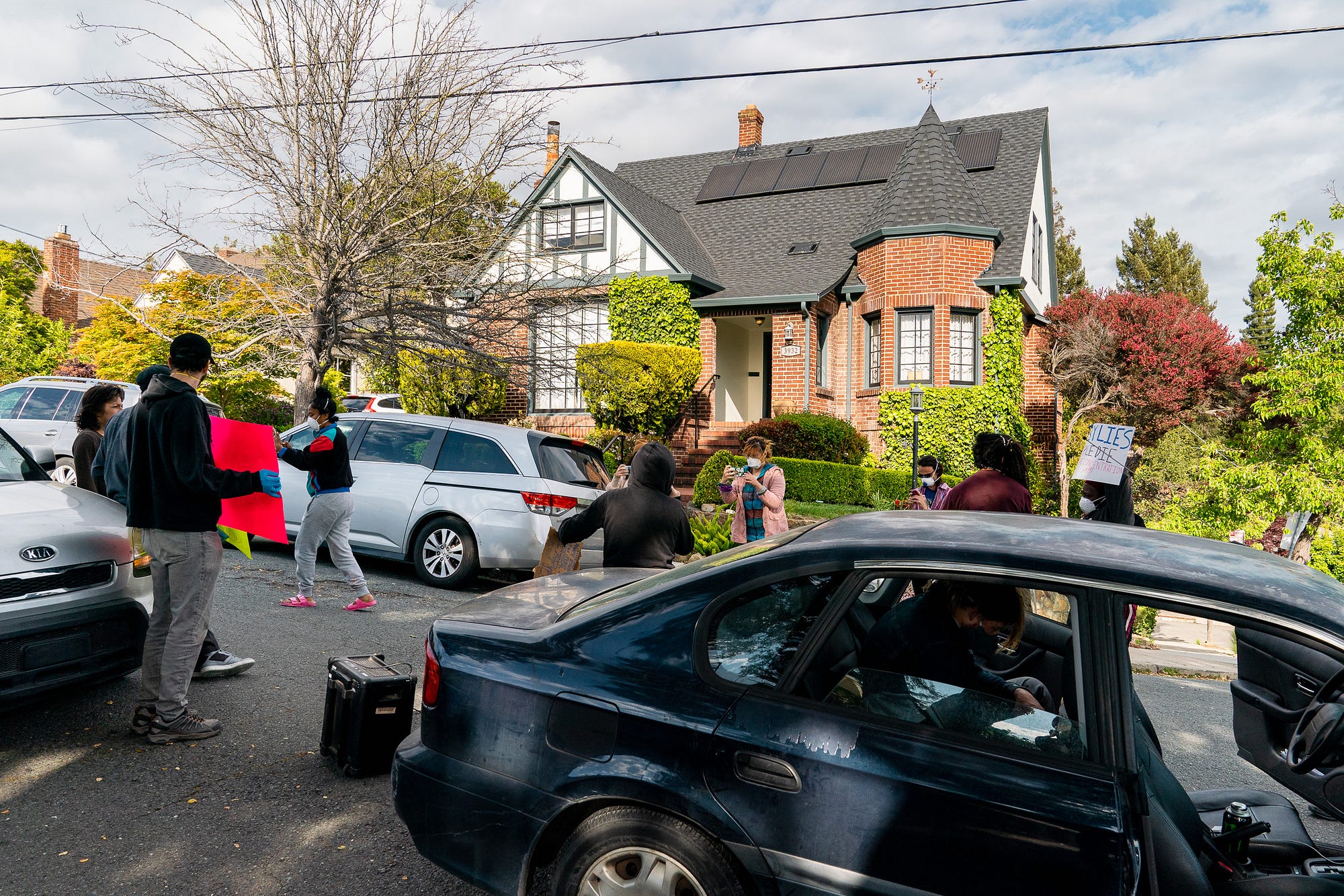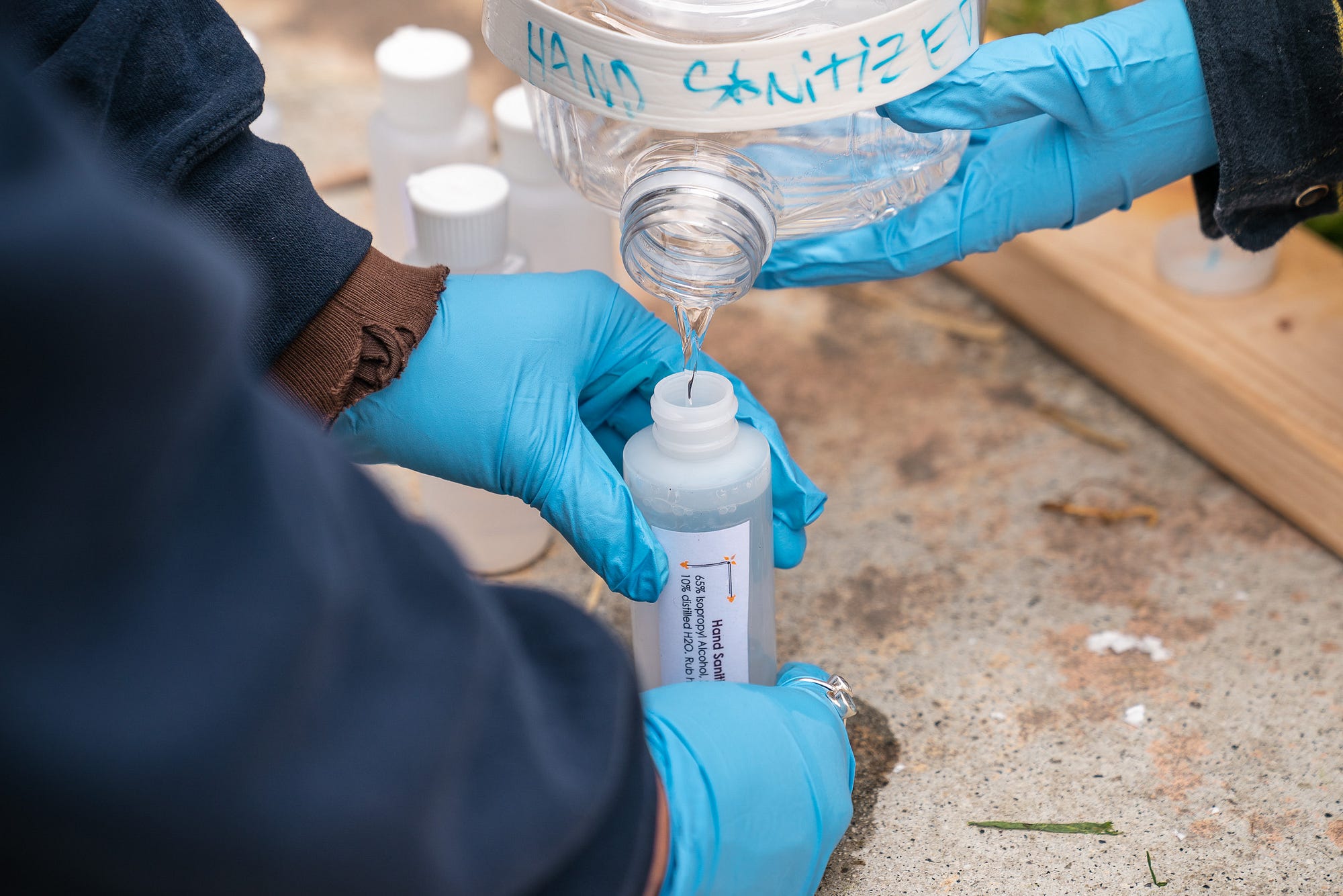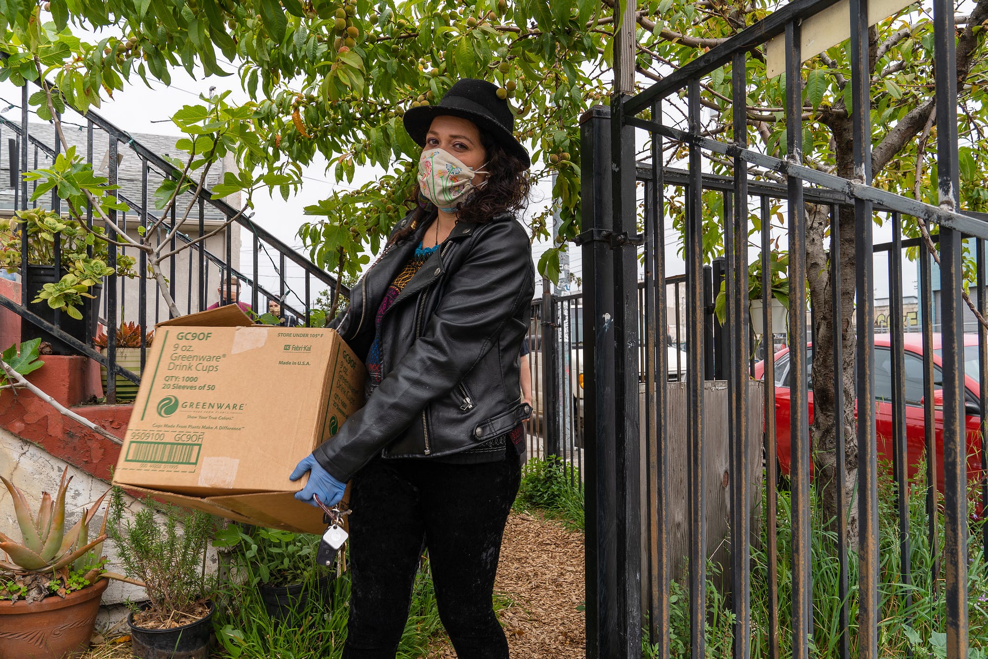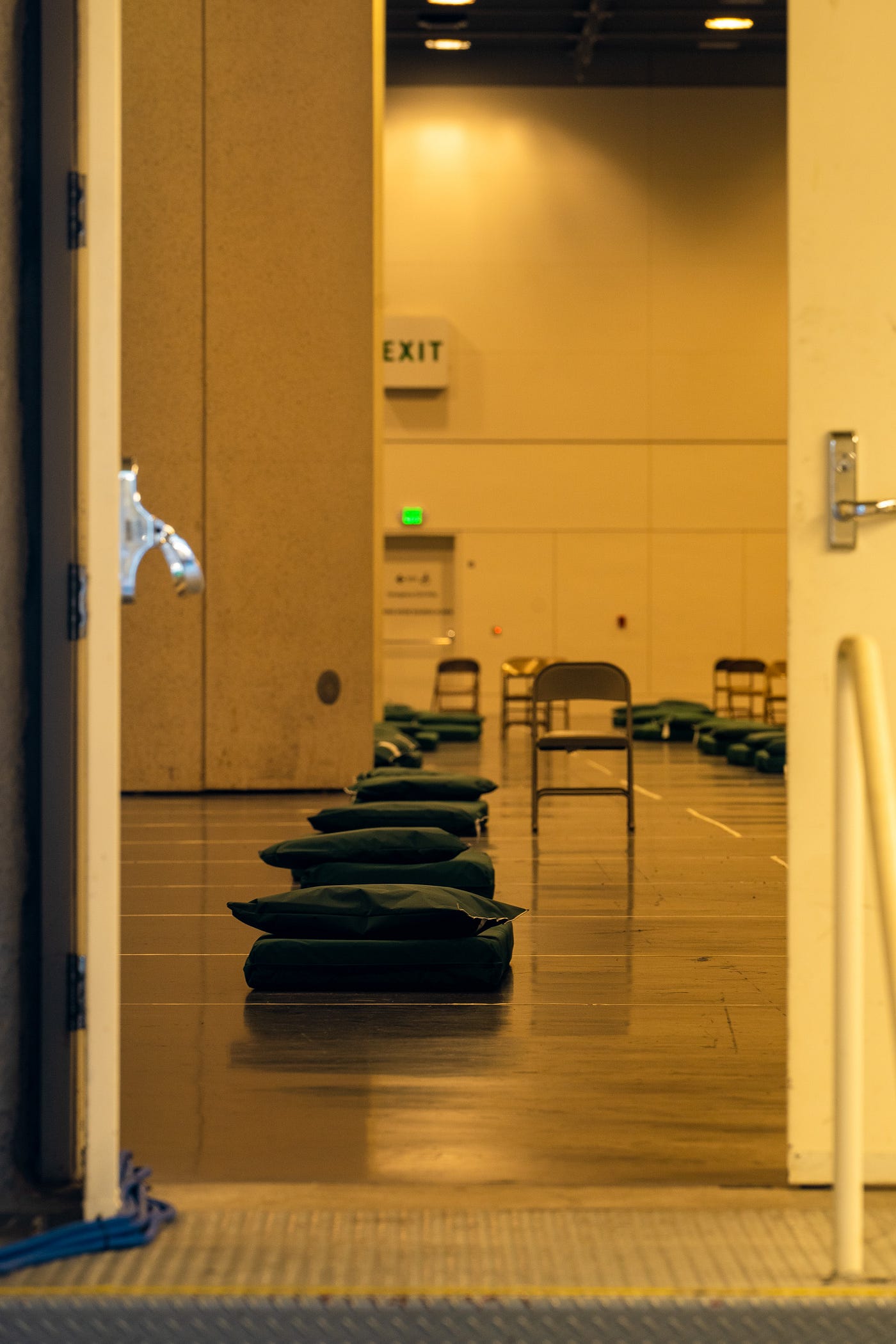 The streets are quiet and nearly empty in the SOMA neighborhood of San Francisco on the evening of March 20. Six Bay Area counties including San Francisco County issued shelter-in-place orders that began March 17.Larry, a resident of the Wood Street Collective, poses for a photo while eating lunch in Oakland on April 12.Members of the United Front Against Displacement host a weekly community meeting for residents of the Wood Street Collective in Oakland. The group has been working with residents to understand their needs to provide support and essential services not provided by the city.Left: A protestor urges San Francisco Mayor London Breed to provide shelter for homeless people in vacant hotel rooms, leading chants from their car outside the Moscone Center homeless shelter in San Francisco on April 3. Right: Signs on the windows of the Multi-Service Center South homeless shelter inform people that one-night reservations are no longer available due to Covid-19. Three days later, 68 long-term residents at the shelter and two staff members tested positive for Covid-19. The most recent report puts those numbers at 96 residents and 10 staff. Homeless advocates have called for the city to house homeless residents in hotels during the pandemic to avoid the spread.Floor mats and pillows for homeless people fill one of the halls at Moscone West shelter in San Francisco. The city said it would use the convention center and other designated locations as temporary shelters but later revised its plans after backlash from homeless advocates who said the layout of the rooms didn’t allow for proper social distancing.Dayton Andrews, an activist with the United Front Against Displacement, holds face masks to distribute to residents of the Wood Street Collective in Oakland.Portland (left) and Xochitl Bernadette Moreno prepare soup for residents of Wood Street at Restore Kitchen in Oakland.Volunteers bottle homemade hand sanitizer to be distributed to homeless residents in Oakland. Many people experiencing homelessness don’t have access to running water or the ability to wash their hands regularly. The Centers for Disease Control and Prevention recommends both handwashing and using hand sanitizer to help prevent the spread of Covid-19.Dayton Andrews (left) serves food to a Wood Street resident with the help of Dale Smith (right) in Oakland. The United Front Against Displacement serves residents meals to take back to their tents and vehicles several times a week.Bacon (foreground) and another dog play in the afternoon sun at the Wood Street Collective in Oakland. The United Front Against Displacement also provides food for residents’ pets.Wood Street resident Amanda stands in front of an Oakland Police Department vehicle parked within the Wood Street Collective in Oakland. Residents have complained about increased police presence since the shelter-in-place order went into effect.Homeless residents and members of the United Front Against Displacement protest in front of Oakland Mayor Libby Schaaf’s house. The group’s demands include services and support for homeless people and an end to police harassment.Christin Evans with Homeless Youth Alliance unboxes donated tents inside her garage in San Francisco. Evans and other homeless advocates solicited the donations on Twitter and have received as many as 40 tents in a single day. Tents are distributed to homeless residents across the city in collaboration with several outreach organizations.Supplies for a temporary homeless shelter at Moscone West are pictured in the hallway of the convention center in San Francisco.Xochitl Bernadette Moreno carries a box of supplies for providing homeless people with meals in Oakland. Moreno is a member of Essential Food and Medicine and works with multiple organizations to feed people in need throughout the East Bay.Volunteers build handwashing stations for homeless people in Oakland.An activist performs maintenance on a handwashing station after receiving feedback from a Wood Street resident. This is the fourth generation of handwashing stations that the United Front Against Displacement has built for residents.Ben and Cassidy of the United Front Against Displacement walk through the Wood Street Collective while checking in with residents.Tony Fuentes Diaz, 40, sits in front of his RV with light from his truck headlights at the Wood Street Collective. Diaz is a trained solar technician and is planning to build a solar power station for all residents to use because the city doesn’t provide sanctioned electrical service to the community.A sign in the windows of Multi-Service Center South, the largest homeless shelter in San Francisco, offers a positive message. Nearly 100 residents of the shelter and 10 staff members have tested positive for Covid-19.