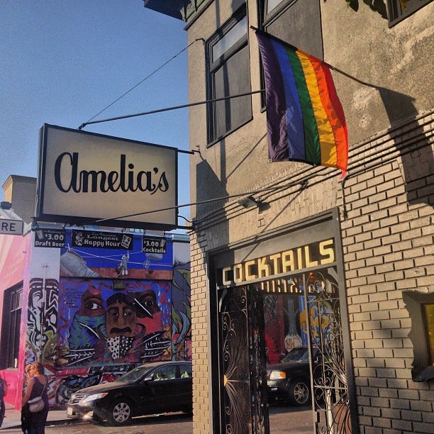 Here’s a shot of the Elbo Room honoring its past lesbian bar incarnation, Amelia’s, during Pride, as it does annually.