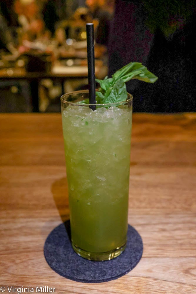 A berbere-spiced, chocolate brown butter mousse-like-dessert layered with textures of pineapple goes tart and earthy, but I prefer the dissolve-in-your-mouth perfection of “puffs”: donuts dipped in honey and chocolate caraway. They recall fritter-like Moroccan sfenj made from sticky, unsweetened leavened dough but with kinship to Portuguese and Brazilian bolinho. Desserts are brightly paired with an Il Coda cocktail: Yellow Chartreuse, Meletti Limoncello, velvet falernum, Eureka lemon juice.