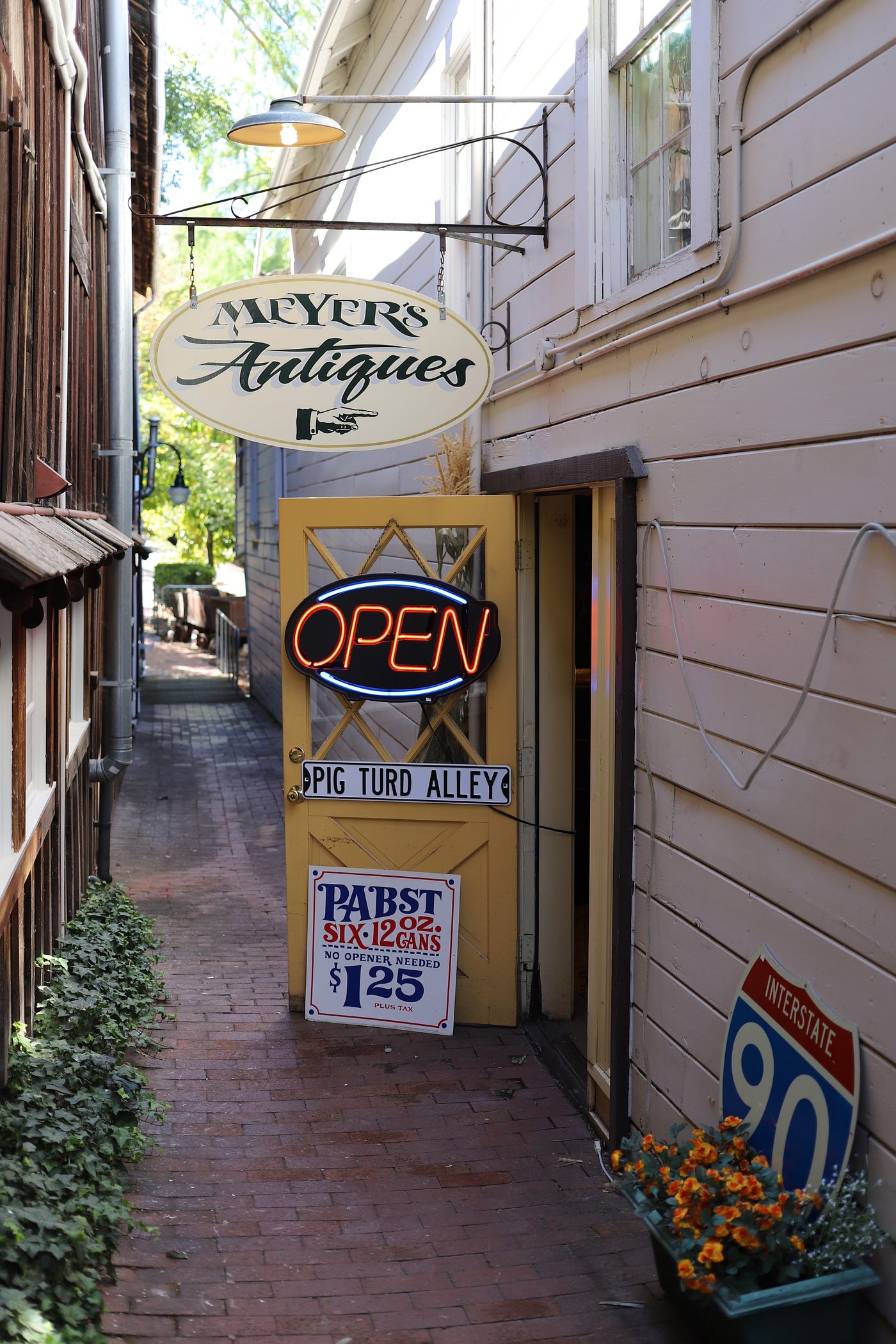 Start in Pig Turd’s Alley — a literal alleyway where pigs would cross from nearby farms on their way to the market. There, despite an off-putting name, you’ll discover Amador City’s brightest gem: Meyer’s Antiques. It’s a treasure trove of Northern California history and could double up as a museum if it wanted to.