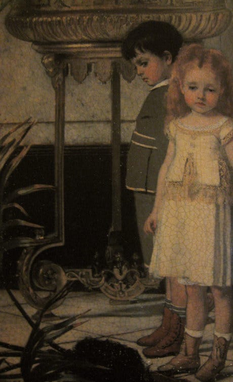 The room was actually more like a suite. Modern touches — two TVs — competed with older furnishings. It was one thing to read about the friendly ghost, but the testimony from the front desk suddenly made everything so much creepier. One of the two closet doors wouldn’t shut, and would seem to keep opening farther. The windows were open, making the sheer curtains billow. Even the mimeographed paintings — like the one of the young girl — seemed ominous. The prospect of spending the night there suddenly felt overwhelmingly scary.