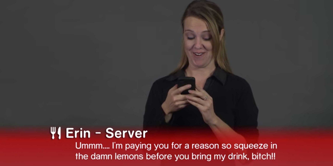 Modeled after Jimmy Kimmel’s “Celebrities Read Mean Tweets” videos, this one features 15 different servers, bartenders, kitchen managers, and cooks reading scathing Yelp reviews about themselves or the restaurant they manage.