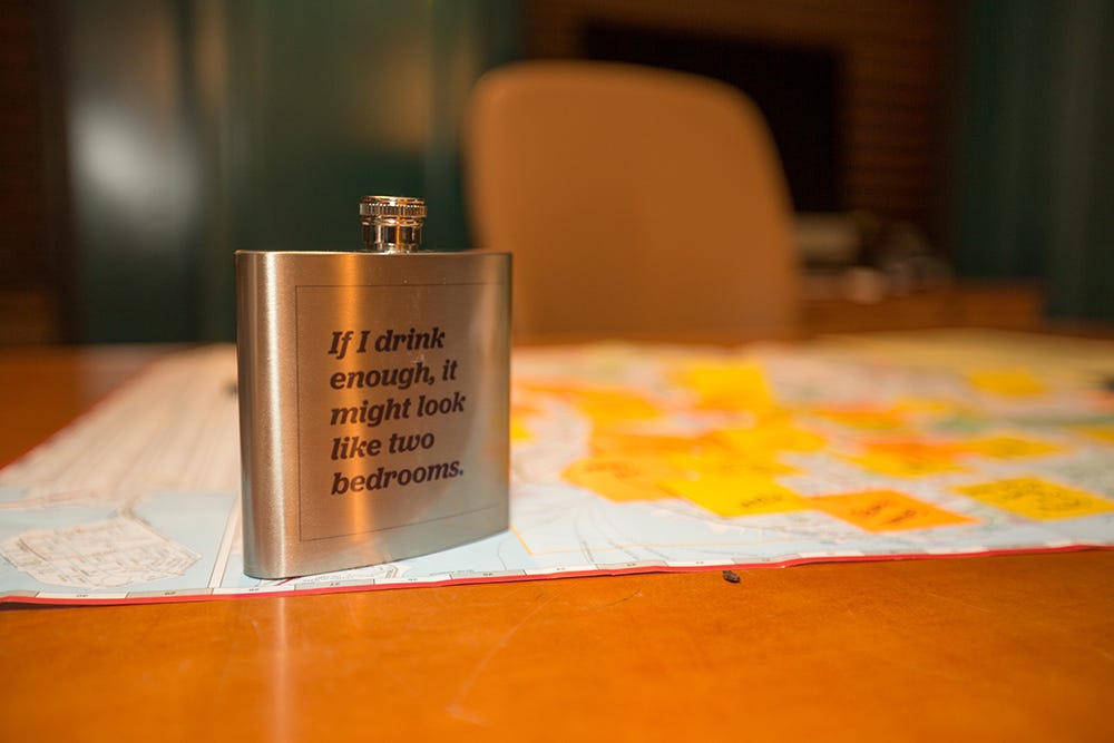 To celebrate renting in San Francisco would be absurd, so that’s not what the party was about. It was instead a time to rub elbows, drink, dance, eat, and vent. After all, as a Trulia flask read: “If I drink enough, it might look like two bedrooms.”
