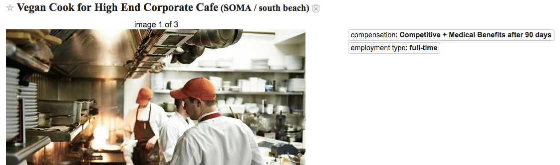 What: Cooking vegan food for techies, possibly the most San Francisco job I’ve ever come across.