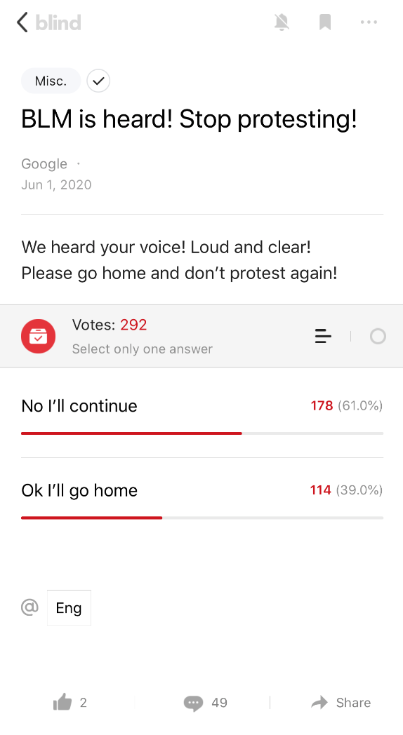 In the past few months, Blind has tried to expand to other high-earning professions outside of technology, such as finance and consulting. It’s not clear how successful it’s been.The future of Blind, like the future of any social platform, depends on who they attract, how they attract them, and how they moderate the discussion to keep people there. The future could look more like Reddit, where there is clear moderation and terms of service, or 4chan, a place where hateful rhetoric and misinformation thrives. Blind will need to decide what it becomes.
