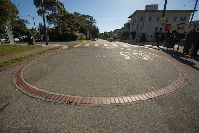 As much as I wish it were D, the answer is actually C. When I first moved to San Francisco, I noticed the brick circles here and there and just figured they were old roundabouts from the horse and buggy days. I learned what they really are a couple years ago on a walking tour of the city’s historical waterways called Thinkwalks. I promise that experience was as nerdy as it sounds. (On that same tour, I learned what those little spray painted dots on all the storm drains were too.)