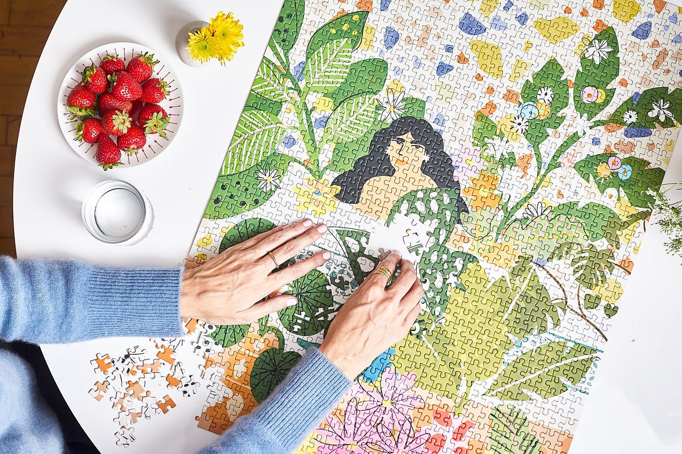I’ve gone absolutely mad for jigsaws. During the past three weeks, I’ve purchased an alarming number of puzzles: a 500-piece Harry Potter book cover collage, a chic 800-piecer designed by one of my favorite artists, Alja Horvat, and a collection of four modern 1,000-piece puzzles with photos of things like birthday cakes and dirty martinis. Sorry, they’re all sold out now. Puzzles are having a major moment, if you haven’t heard.