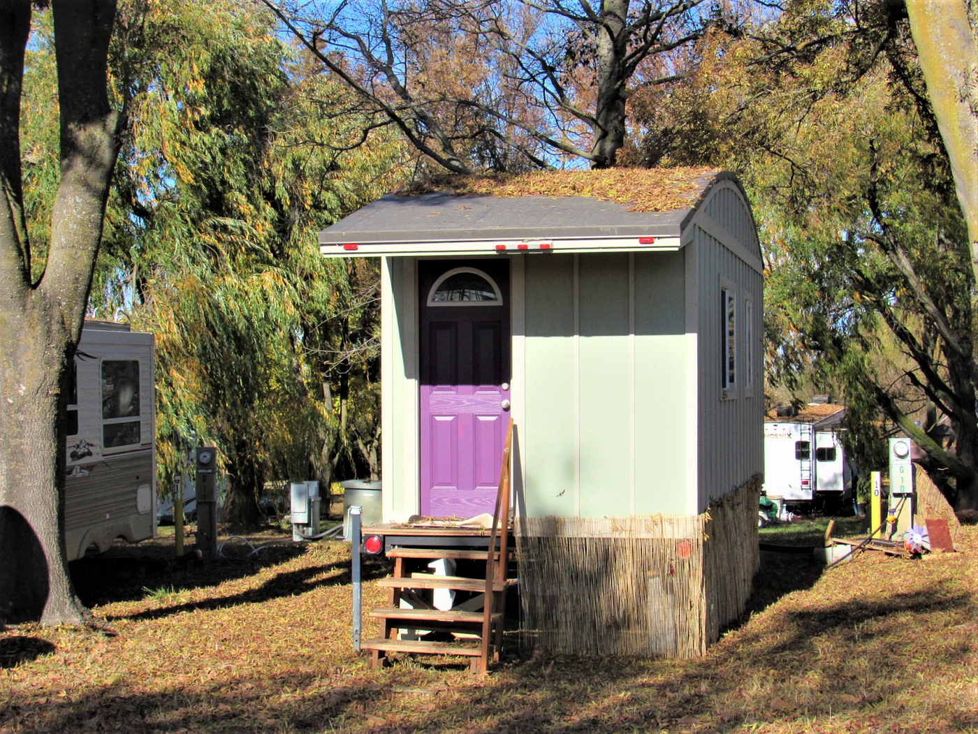 Even though the park’s 132 slots are mostly taken by conventional travel trailers and fixed cottages, about a dozen swaths of land are dedicated to tiny homes, with that number expected to grow in the coming months. The tiny-house plots sit on level, lush ground that gives lodgers patios, barbeque pits, potted gardens, and even the odd above-ground koi pond.