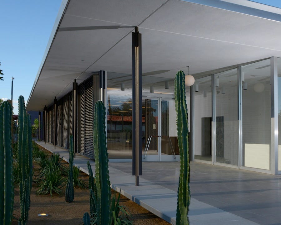 Currently showing is An Eloquent Modernist, E. Stewart Williams, Architect exhibit. Williams was one of the most important architects of the Desert Modern Style and designed the museum, formerly a savings and loan building, in 1961. The structure was rehabilitated by the architecture firm Marmol Radziner, who also restored the famed Neutra-designed Kaufmann House.