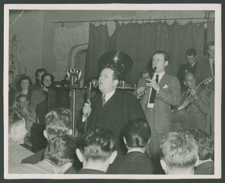 The Monadnock building survived the 1906 earthquake, and still has the dynamite scars in its foundation to show where they failed to knock it down trying to save The Mint and The Palace during the subsequent fire. The Dawn Club’s first iteration opened here in 1933, just in time for San Francisco’s Great Jazz Revival, and soon it was the heartbeat of the local jazz scene, featuring such acts as the Lu Watters’ Yerba Buena Jazz Band. But after some tax difficulties the club was closed in 1946.