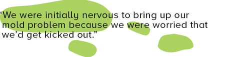A tighter rental market increases fears that if someone loses their apartment, they won’t be able to find another affordable rental within the city. As Wilson says, “We were initially nervous about bringing up our mold problem because we were worried that they’d choose to just remediate the whole building, and we’d get kicked out.” Even in San Francisco, where deferred maintenance of mold is a just cause to sue your landlord, Wilson says, “If I had a place now that had really bad mold, I wouldn’t say a word. I’d keep my mouth shut.” Education about renters’ rights is an important part of mold remediation. As Cohn says, “People are scared of this subject. If something leaks and it isn’t taken care of, this is the property owner’s responsibility. Tenants need to feel empowered to ask for that.”