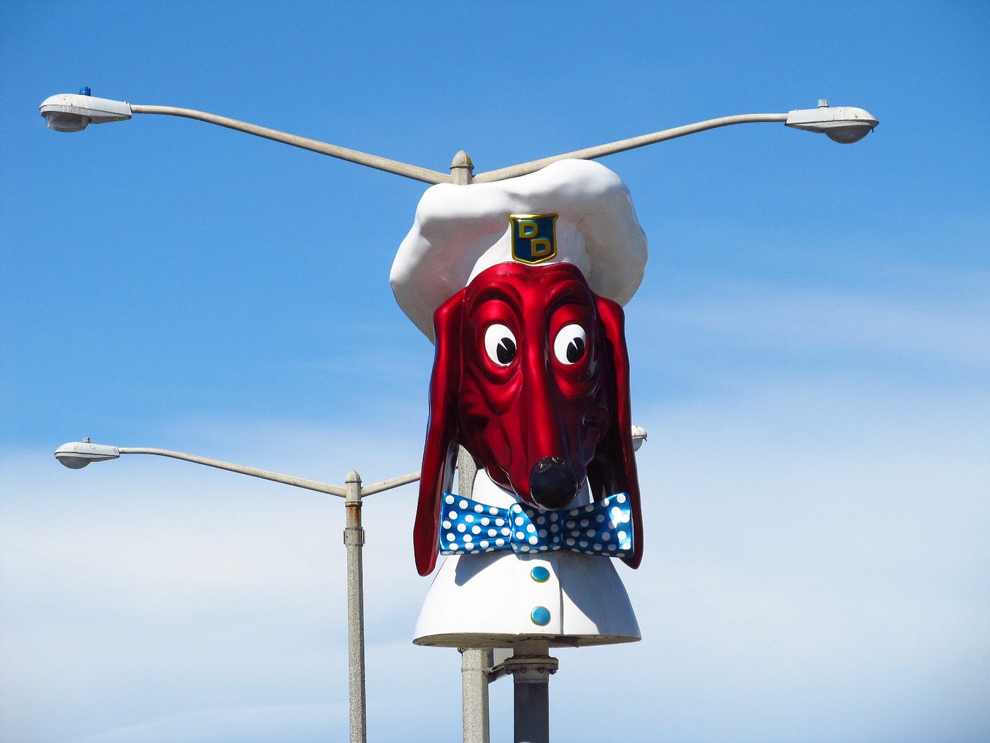 For now, all that remains of Doggie Diner are the 30-odd signs, many of them with Bay Area antiques shops and collectors. The last doggie head that can be seen standing in San Francisco is now a city landmark at Sloat Boulevard and 45th Avenue, a reminder of the city’s most sausage-loving era.